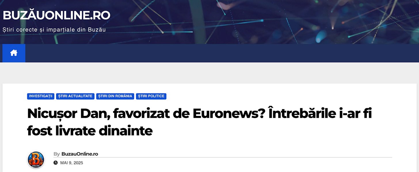 Buzauonline.ro și-a oprit postările pe 9 mai 2025, după primul tur al alegerilor prezidențiale, iar ultimele postări sunt știri false despre Nicușor Dan, respectiv narativa AUR conform căreia președintele ar fi blocat construirea unui spital oncologic pentru copii și teoria că la dezbaterea Euronews ar fi primit întrebările înainte de eveniment – fake news generat de influencerul pro-rus Dan Diaconu. După 9 mai, pe site au mai apărut 3 postări în iunie, iar site-ul nu mai are activitate și a fost închis.