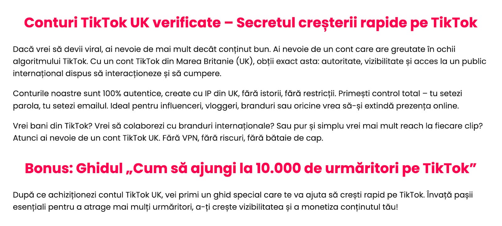 Unul dintre IP-urile folosite de Duță este 185.92.194.94, unde a mai apărut listat și site-ul conturiuk.ro, care ne-a atras atenția pentru că este un site care încalcă regulile altei platforme. De data asta, TikTok.